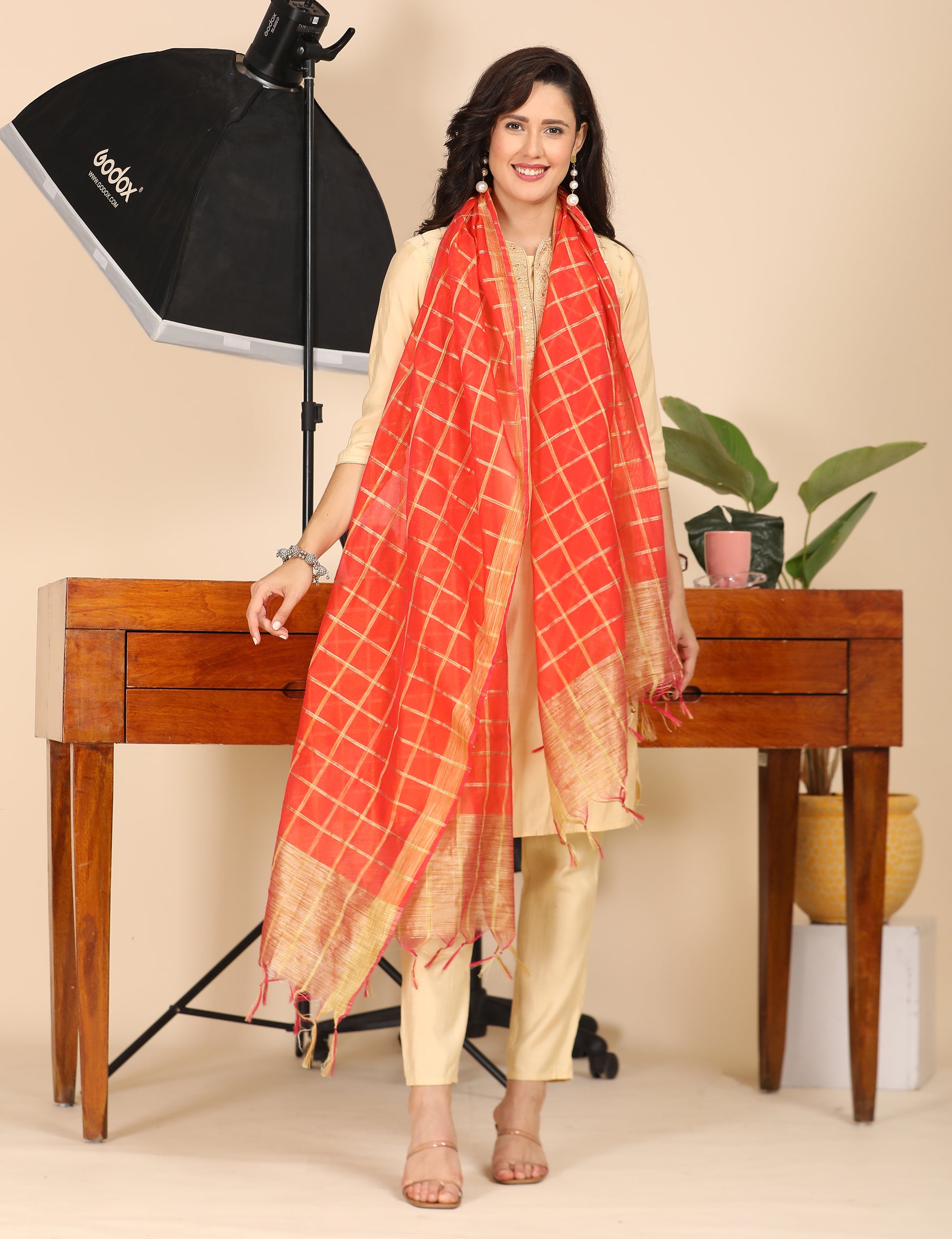 Introducing our exquisite Office Wear Banarasi Dupatta Red perfect for adding a touch of elegance to your office attire. Hand-woven with traditional Banarasi silk, it's lightweight and comfortable for all-day wear. Enjoy the convenience of same-day delivery in Bangalore, Karnataka. Shop now.